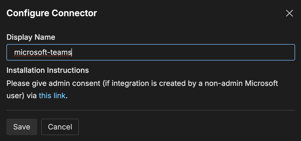 Name to identify this Microsoft Teams connector instance.