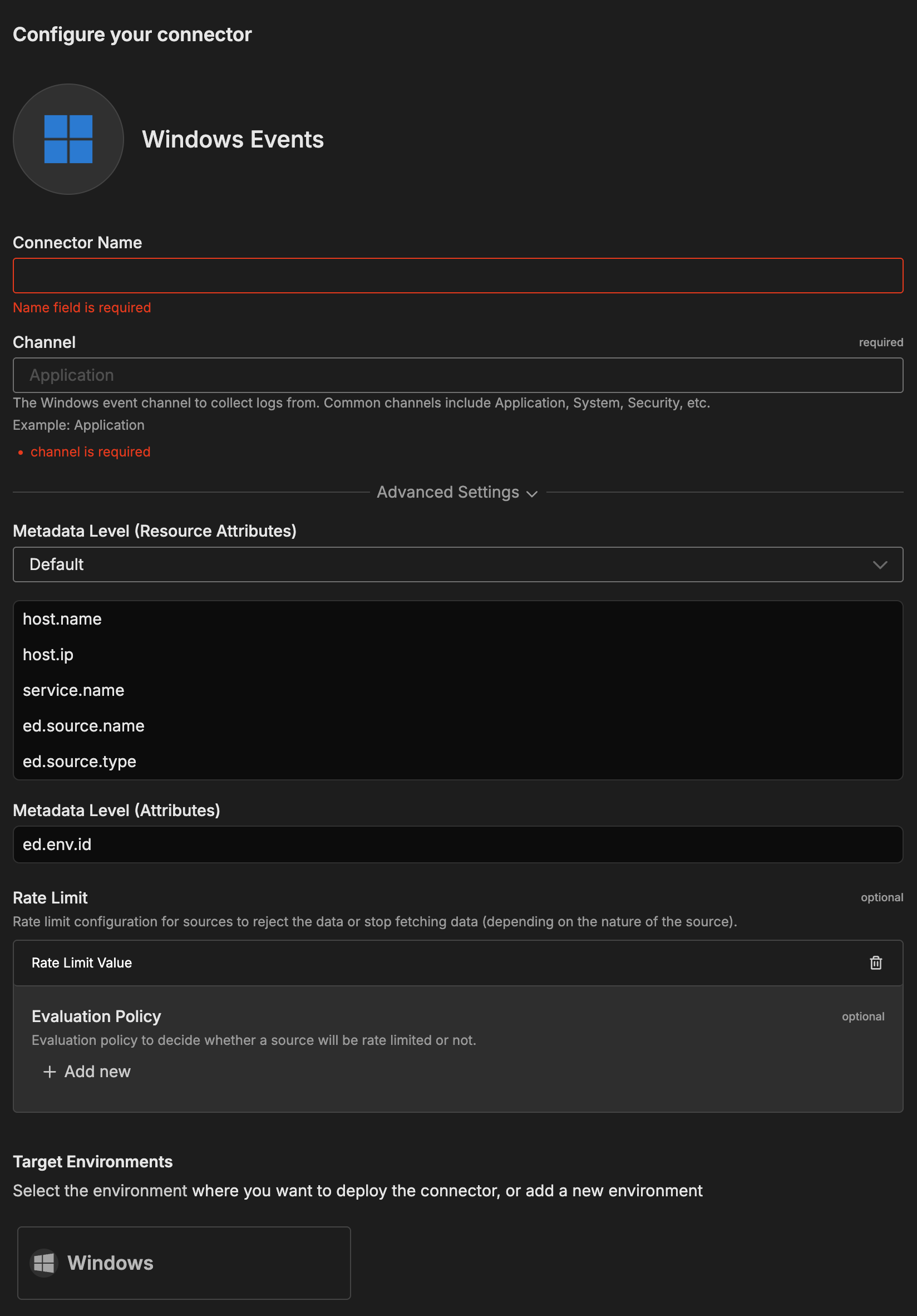 - Learn about Windows Event source configuration for advanced pipeline integration